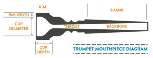 Trumpet mouthpieces have many parts that give a variety of results, which are explained on this page. If you are a beginner or intermediate player, it’s best to use a standard mouthpiece unless you truly have a need for a specific configuration. Your teacher would be the best person to advice you on this. You will notice that when you alter a part of your mouthpiece it always comes with a price. Probably the most important aspect of choosing a mouthpiece is remembering that a mouthpiece will not make you sound better, give you more range or drastically improve your playing. Improvement only comes from correct and consistent practice.