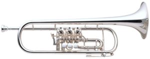 - Info: As you can see, this instrument doesn’t have piston valves, it has rotary valves like a French horn. There are rotary piccolo trumpets and other varieties too.