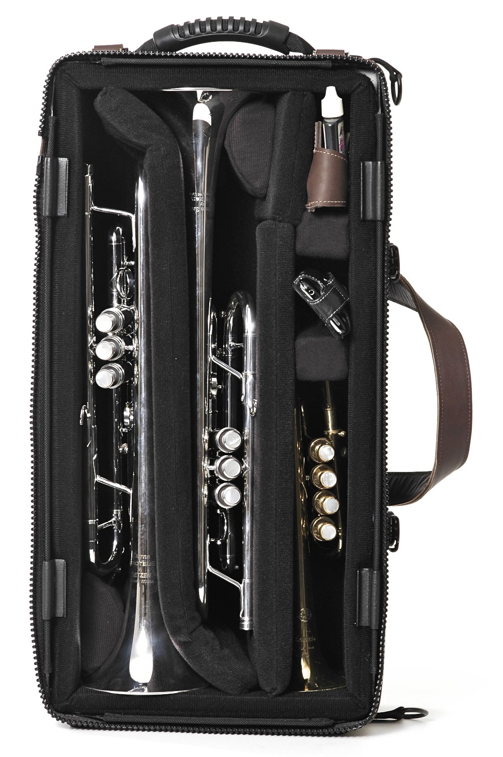 There are also cases that hold 2, 3, 2.5 and 3.5. The “.5” is a piccolo trumpet. My Torpedo case for example holds 2.5 so I keep my Bb, C and pic in there. Because there is so much customizable space I can also put a straight mute in the case.